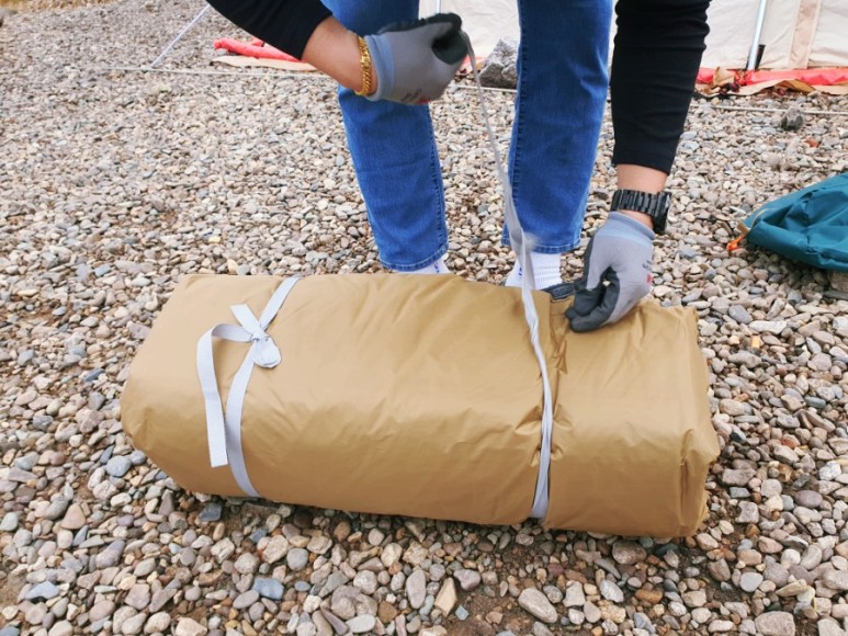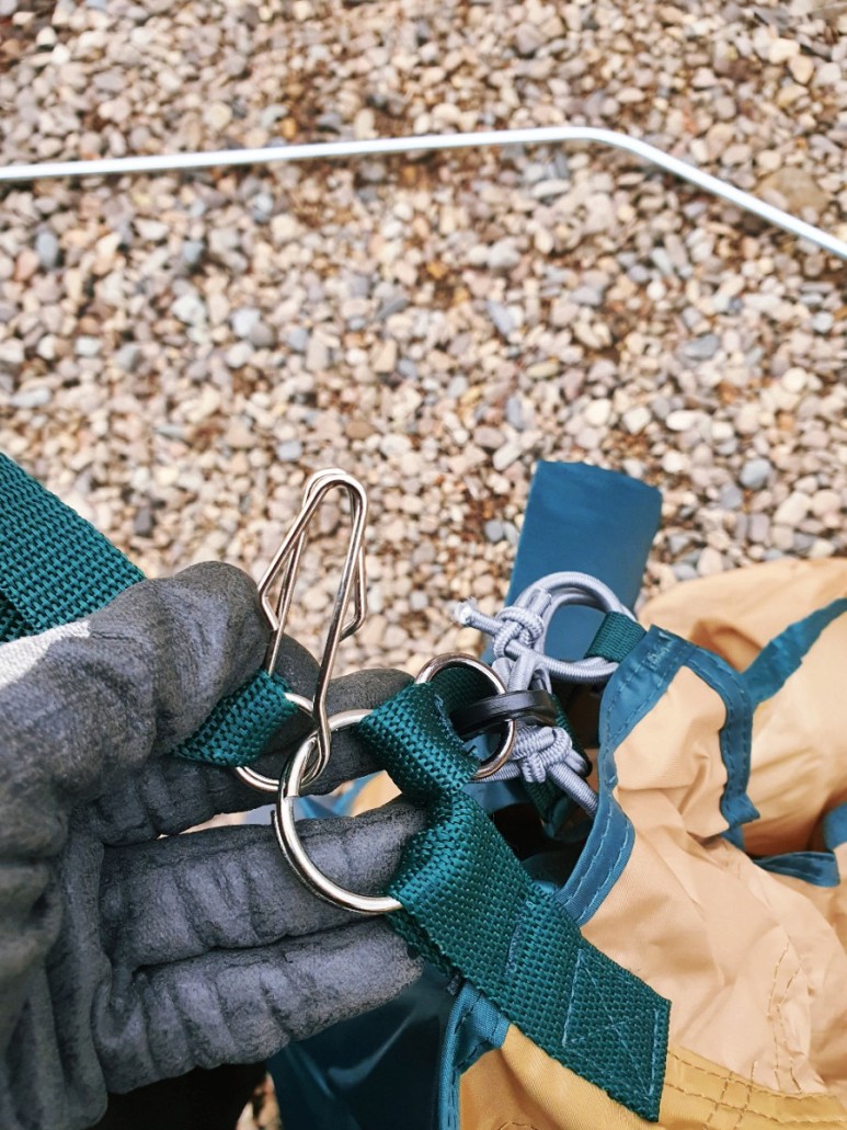 기존 텐트를 미리 자리 잡아놓고 팩질을 우선적으로 수행해 주었고 스크린 타프를 설치하기 위한 준비를 후속적으로 이어갔습니다.