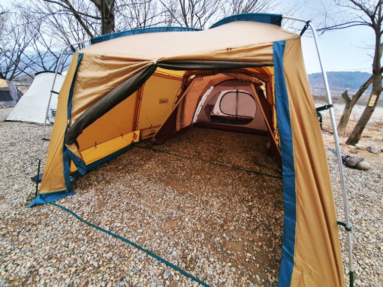 무수한 검색을 하던 도중 우연히 도킹이 가능한 콜맨 제품의 텐트를 발견했고 새롭게 비싼 거금을 들여 텐트를 사지 않고 현재의 텐트를 이용하면서도 전실을 넓힐 수 있는 방법이 생긴 것에 환호하며 콜맨의 타프 스크린을 구매했습니다.