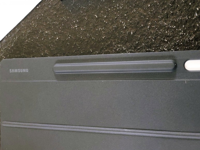 갤럭시 탭 S7+의 전용펜은 패드 뒷면에 자석 형태로 붙는 타입이다 보니 커버에 펜이 들어갈 수 있는 공간이 별도로 만들어져 있는 모습이었습니다.