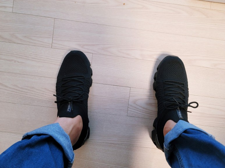 생각보다 색깔이나 디자인이 너무 괜찮아서 첫 번째로 놀랬고 약간 나이키 운동화 느낌도 나는 것이 왠지 오랫동안 걷거나 뛸 때도 발이 아프지 않을 것 같은 그런 첫인상을 받았습니다.