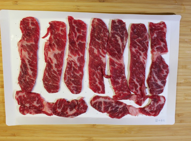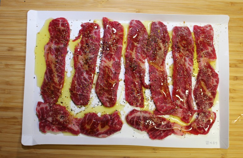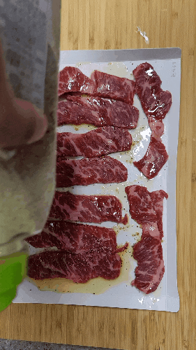 종이 도마를 캠핑용 소고기의 밑간을 준비하는데 활용해 보았습니다.
