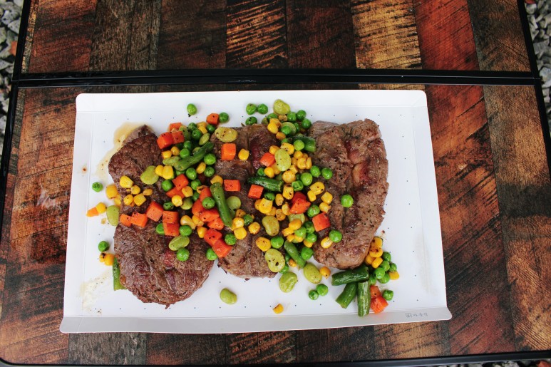 도마를 접은 크기 역시도 비닐팩에 딱 맞아떨어져 도마 그대로를 활용해 냉장 숙성을 하는데 바로 사용할 수 있었고 캠핑장까지 편리하게 가져갈 수 있었습니다.
