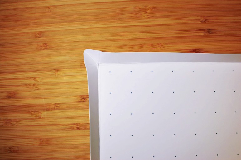 일반 도마는 평평한 바닥으로 인해 흘릴 수 있는 것들이 종이 도마에서는 접어서 사용하면 흐르는 것을 막아줄 수 있어 더욱 아이디어 넘치는 아이템이란 생각이 들었습니다.