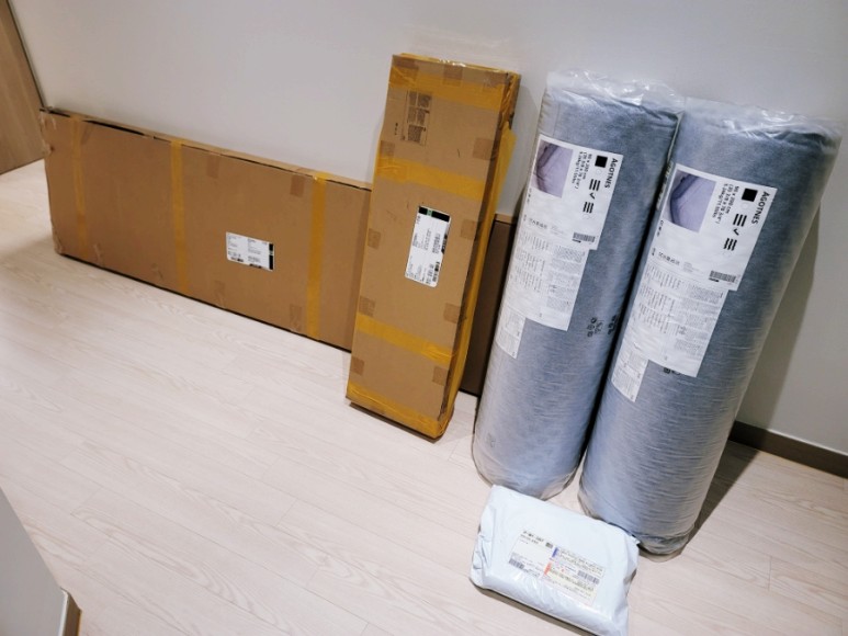 '설치하는데 뭐 큰 어려움이 있겠어?'라는 생각으로 막상 주문을 했는데 현관 앞에 도착해 있는 2층 침대의 조립을 위한 구성품들의 종류와 크기만 봐도 '과연 잘할 수 있을까?'라는 약간의 걱정이 들었습니다.