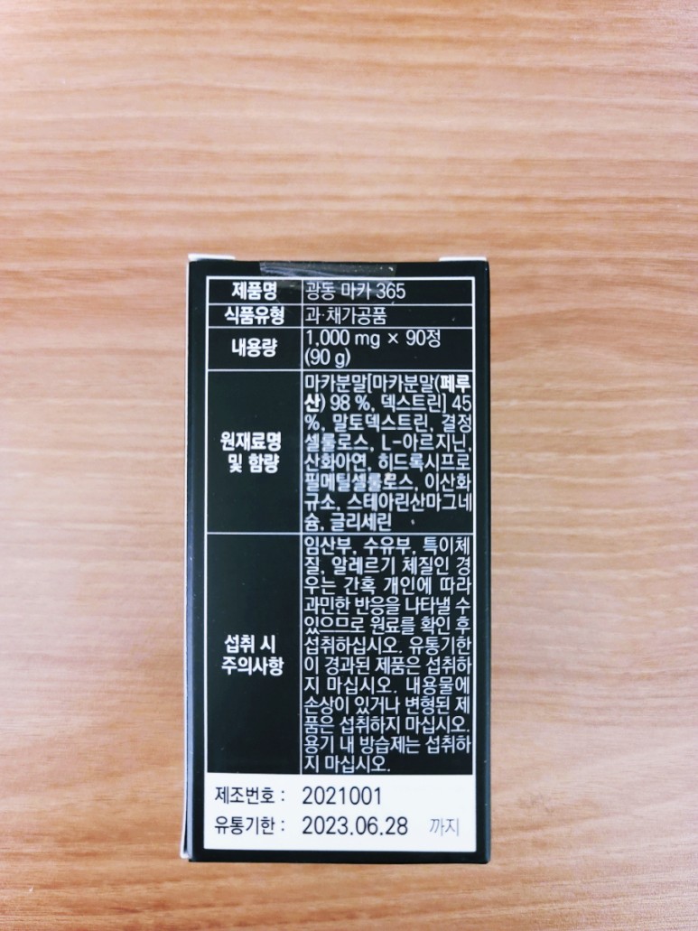 이리저리 인터넷을 검색하다 발견한 '페루의 인삼'이라고 불리는 마카 관련 제품들을 비교하던 끝에 광동마카365를 내 돈 내산으로 구매했습니다.