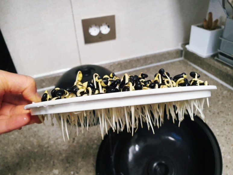 어느새 콩나물 재배 키트의 뚜껑을 들어 올릴 만큼 빠른 성장 속도와 힘을 자랑했고 수확의 시기가 다 되었음을 알 수 있었습니다.