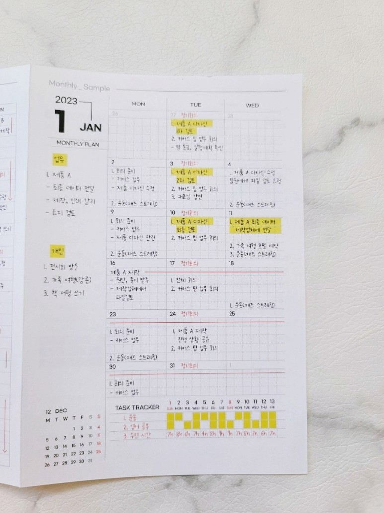 작성 예시와 가이드라인들을 보면서 나는 왜 그동안 십수 년의 세월을 이렇게 매시간, 매일 그리고 매주 철저하게 계획하고 살지 못했나라는 급 반성의 생각이 들기도 했습니다.