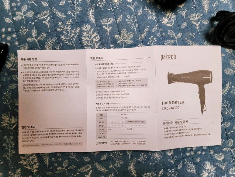 이번에 제가 내돈내산으로 구매한 가성비 만점의 드라이기는 바로 한일전자 파테크 PD-H4300이라는 모델의 제품입니다.