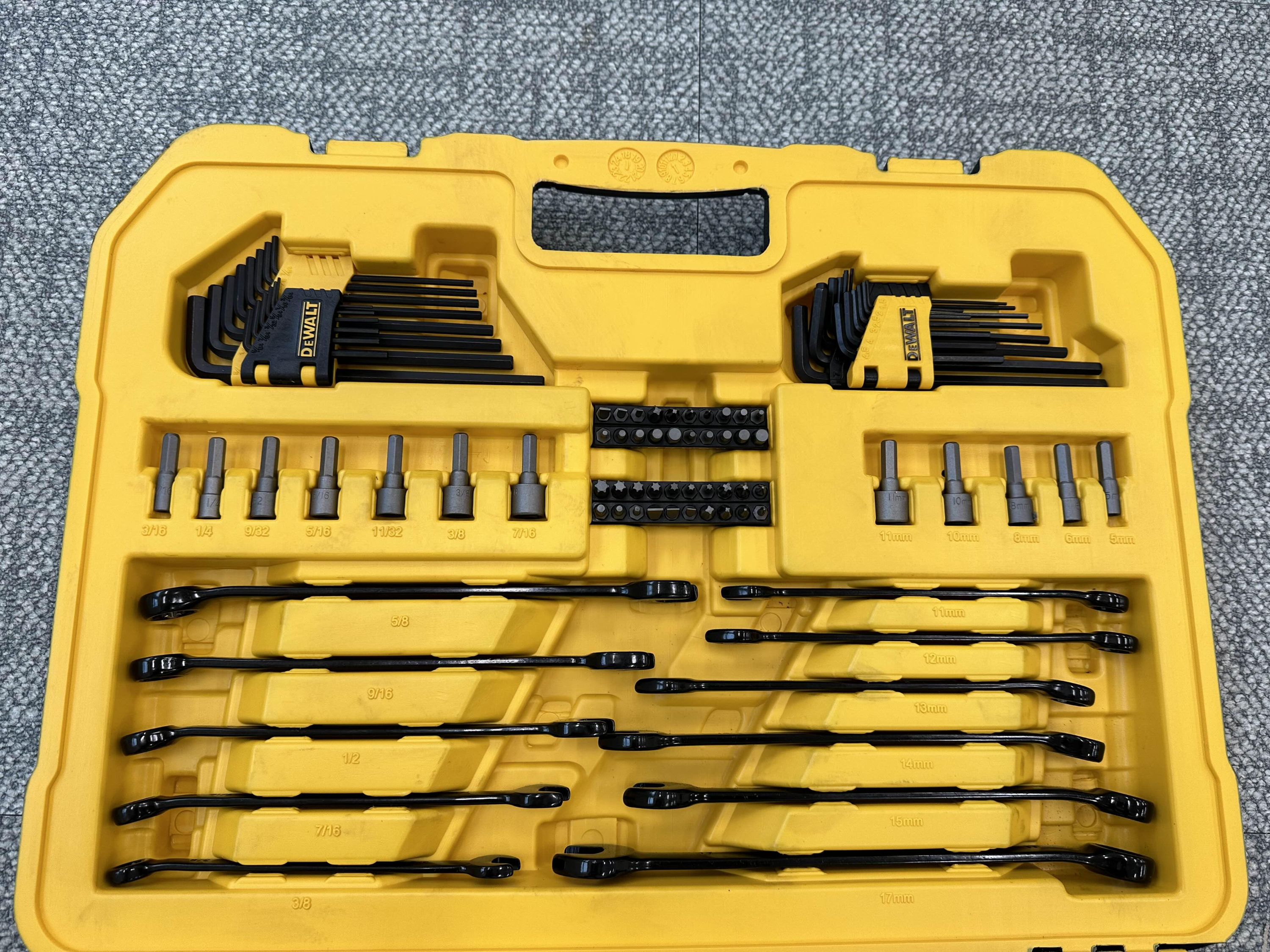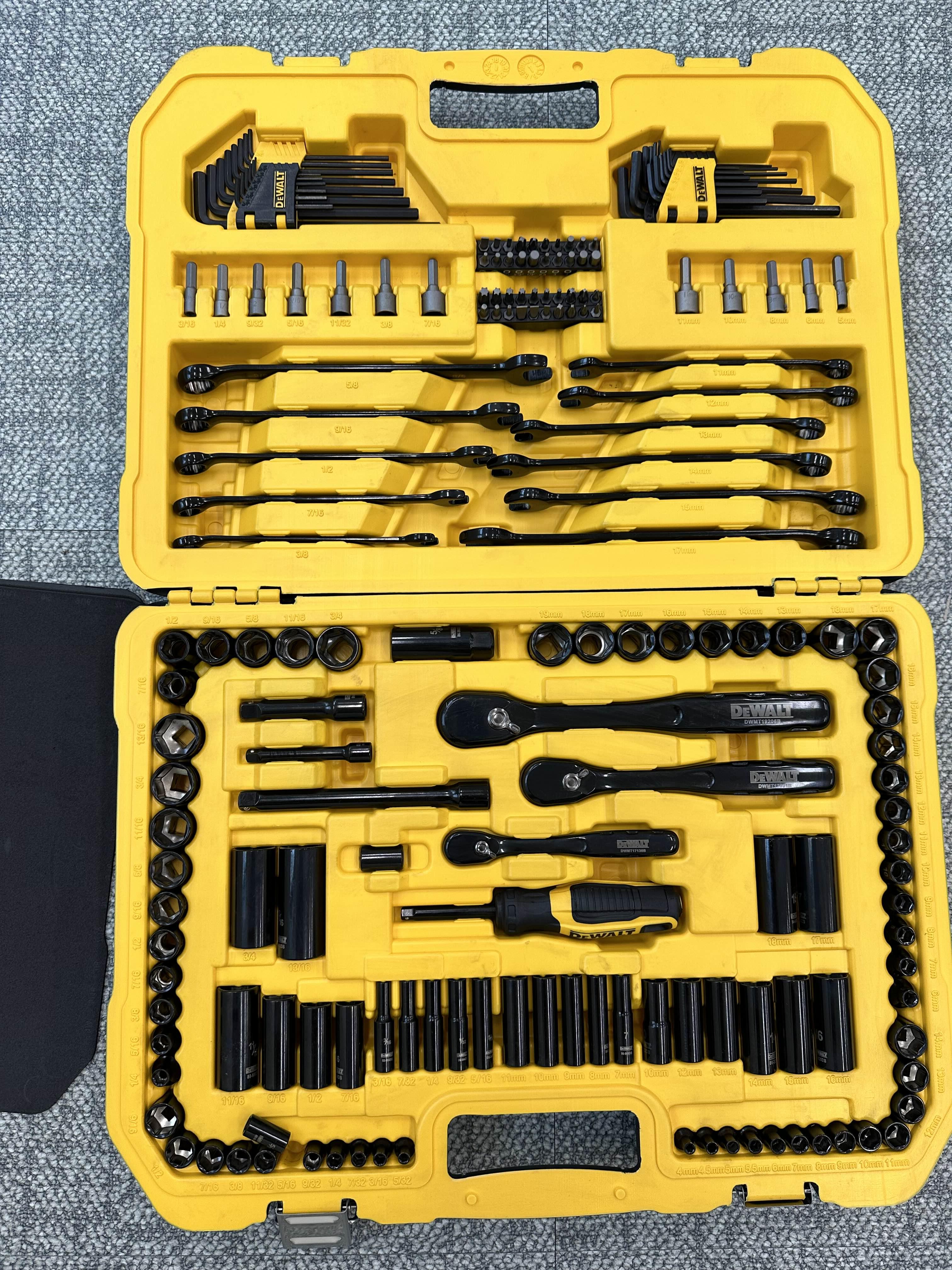 디월트 프리미엄 수공구 세트는 184pcs의 일상에서 자주 사용하는 것은 물론 없는 게 없는 구성을 가지고 있었습니다.