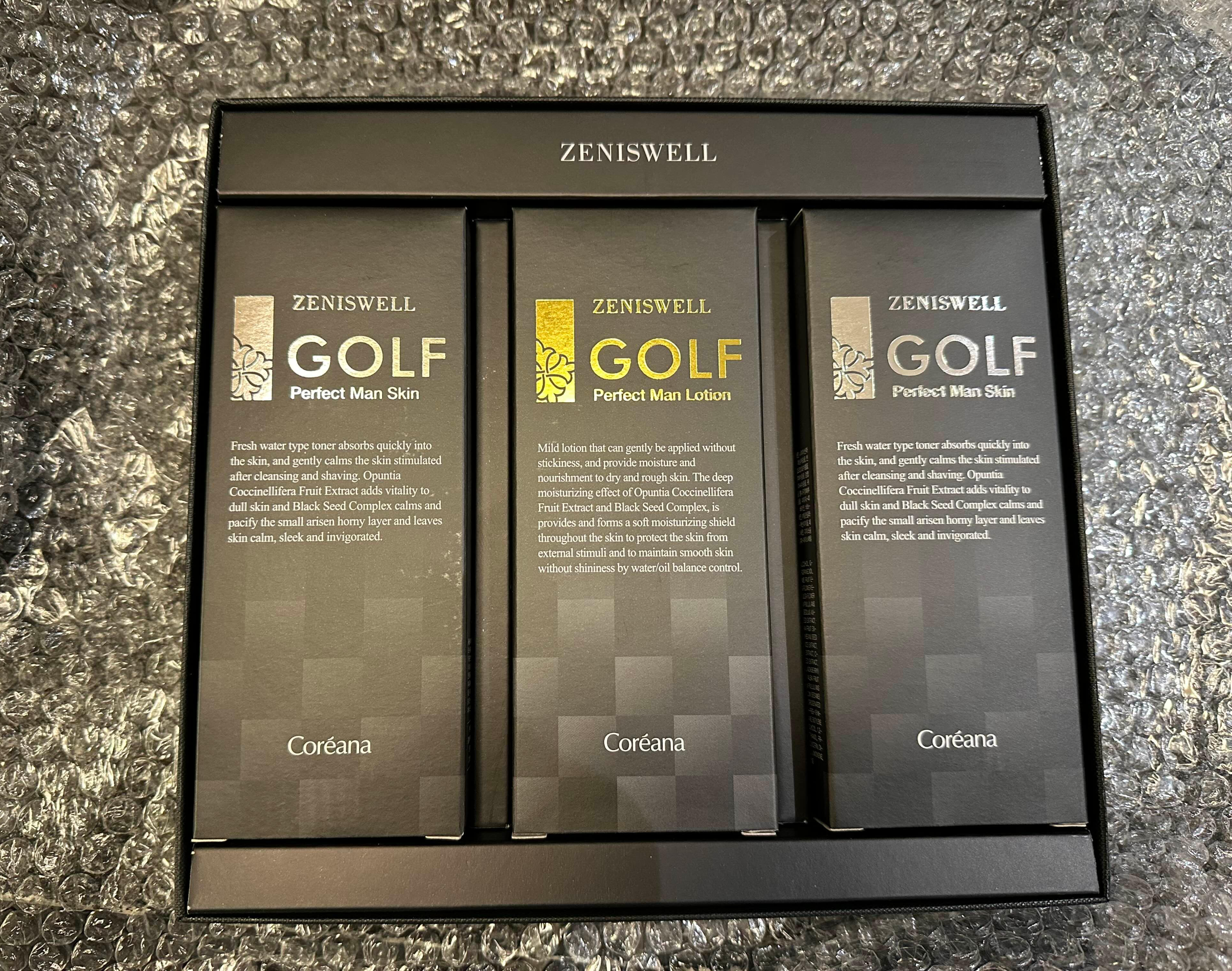 2025년 새해를 맞아 올해는 좀 더 젊어지고 건강한 피부를 만들어보고자 구매한 제니스웰 골프 퍼펙트맨 스킨 3종 세트.